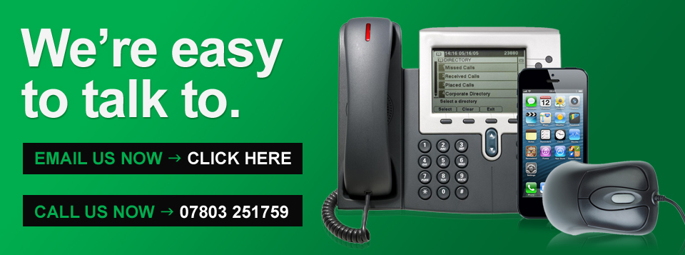 CONTACT US TODAY... Contacting us couldn't be easier. Give us a buzz or drop us an email to talk through your IT needs; you'll get friendly, professional advice and a price and package tailored to your individual needs. (And strictly no hard sell. Promise.) |